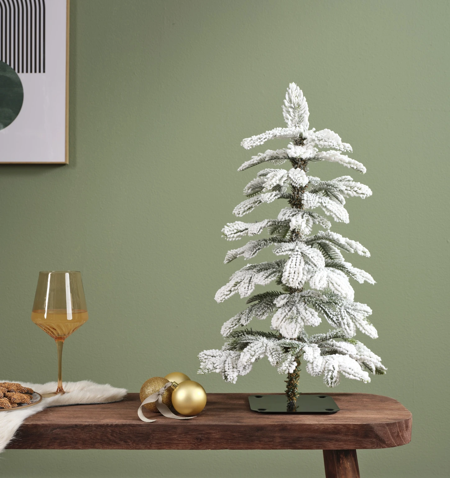 Je vensterbank of een leeg bijzettafeltje kan prima gebruikt worden om deze leuke Alpine Mini Kunstkerstboom van Everlands met sneeuw neer te zetten.