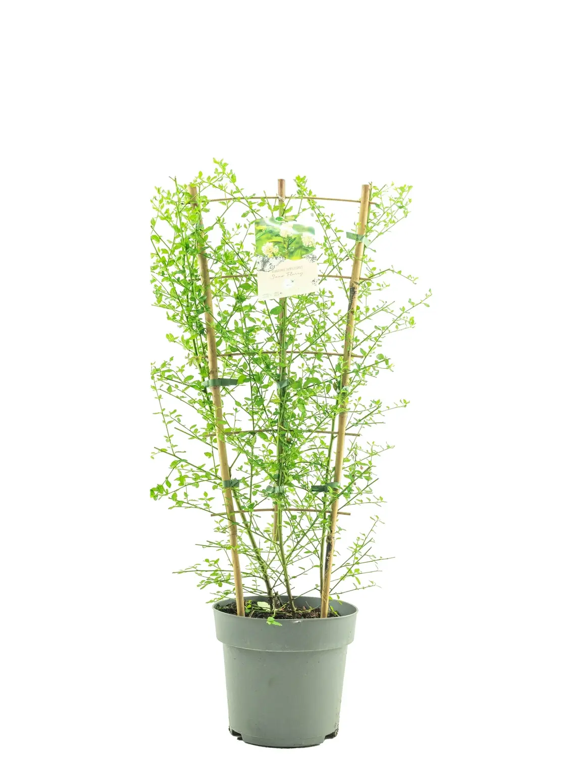 Een unieke Ceanothus met roomwitte bloempluimpjes in plaats van de bekende blauwe varianten. De witte bloemen hebben een heerlijke geur en bloeien in mei - juni. Deze wintergroene struik brengt licht in de tuin met zijn frisse bloei. Ideaal als contrastplant in borders. De 'Snow Flurry' is een struik die wel 3 meter hoog en breed kan worden.