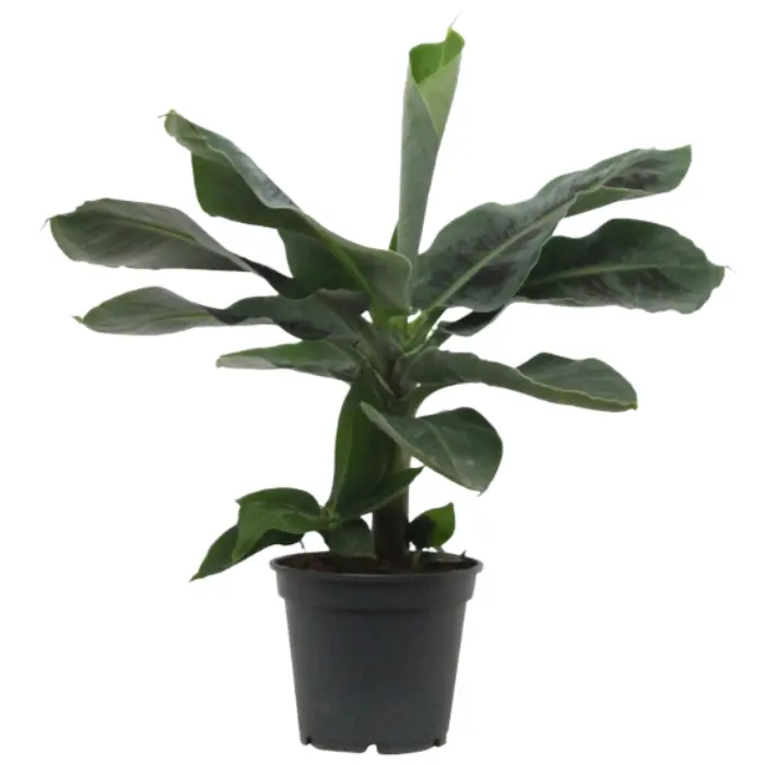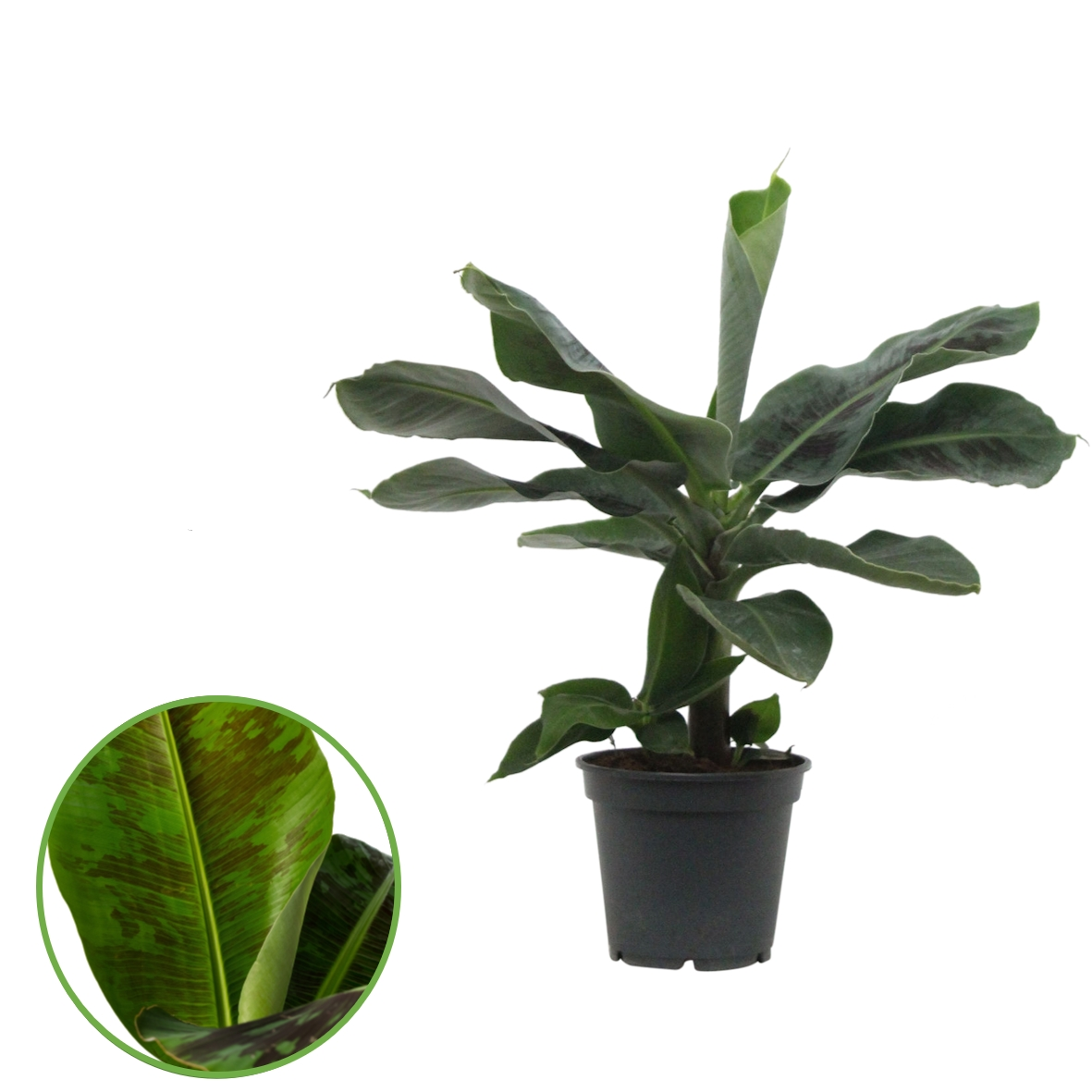 - € 1,40Musa 'Oriental Dwarf' is een dwergbanaan en wordt ongeveer twee tot drie meter hoog. De Musa heeft prachtige grote bladeren om je leefruimte om te toveren tot een exotische leefomgeving. Het lichtgroene, langwerpig blad heeft soms wat donkere strepen. Een bananenplant staat graag op een hele lichte plek maar houdt niet van directe middagzon. Wordt het blad geel, dan krijgt de plant te veel licht. En brandplekken of bruine plekken op het blad kan komen door te veel licht en te weinig water. Het onderste blad en de bladranden zullen bruin worden. Dit is heel normaal. Je kunt wel de bruine randen wegknippen. Het oude blad knip je tot ongeveer 5 cm van de stam af. Verpotten kan direct na aanschaf of in het voorjaar. Een bananenboom groeit snel, dus elk jaar verpotten is geen luxe. Voeding geven doe je in de lente en zomermaanden met gewone kamerplantenvoeding.