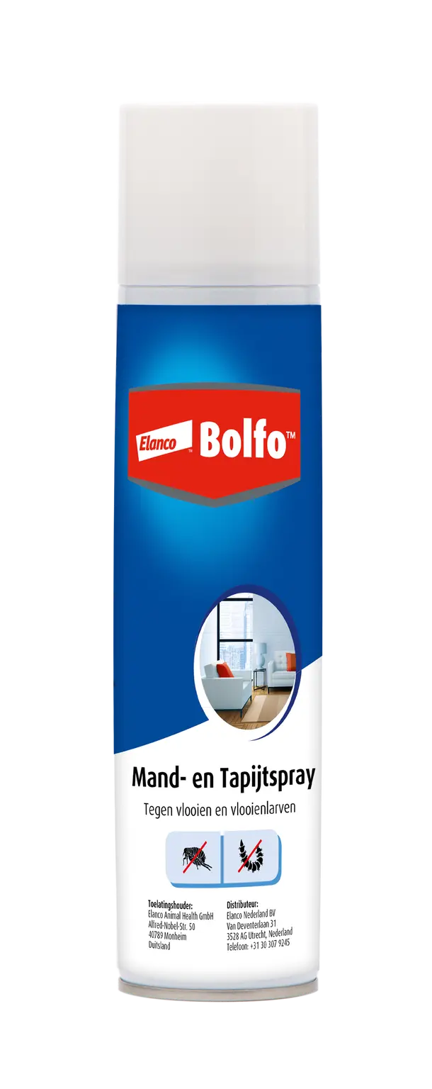 Bolfo Mand en Tapijtspray is een anti vlooienmiddel wat beschermt tegen vlooien en -larven.Dez