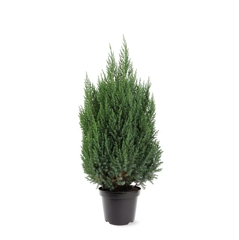 De Juniperus chinensis Stricta (Jeneverbes) is zeer geliefd door de blauwgrijze kleur en goed combineert met de rode bessen van een gaultheria of een skimmia. De Jeneverbes kan wel 150 cm hoog worden maar groeit niet te snel. Daardoor is deze zeer geschikt voor het samenstellen van mooie pot- of plantcombinaties in kerstsfeer.