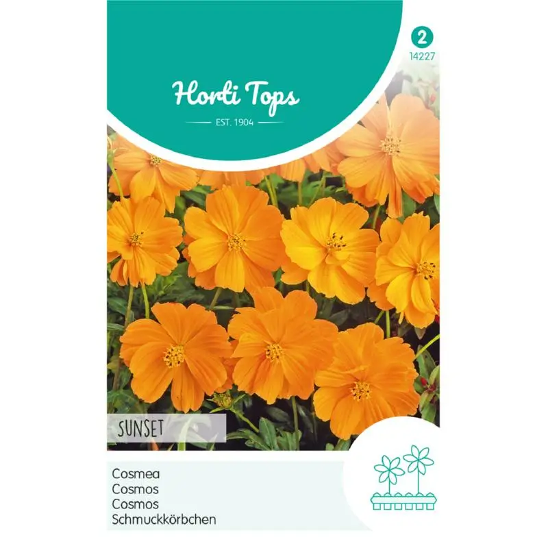 Cosmea 'Sunset' is een rijke en langbloeiende plant met prachtige oranje rode bloemen en staat graag in de zon.