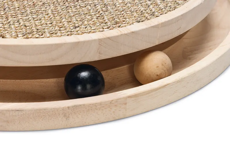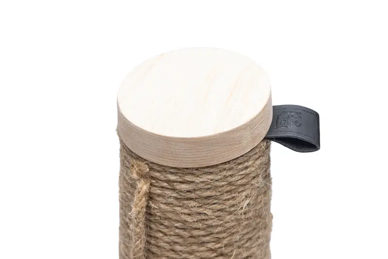 Bescherm je meubelen door deze Krabpaal Zavi Designed by Lotte n huis te zetten. Het is zowel een krabpaal en om mee te spelen. Aan de krabpaal hangs een touw met een veertje en een balletje. En onder in de basis, bij de voet, zitten drie speelballetjes die je kat kan laten rollen. De paal is omwikkeld met jute touw en de voet is een sisal krabmat. Zo kan je kat zijn eigen nageltjes verzorgen door er horizontaal of verticaal aan te krabben. De krabpaal is gemaakt van duurzaam rubberhout.