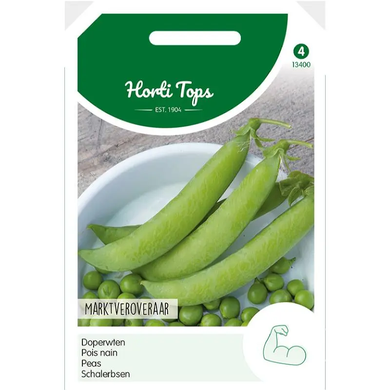 Doperwten 'Marktveroveraar' zaden zaai je vanaf begin maart tot half mei in de vollegrond in regels en ongeveer 2/3 cm diep. Bij voorkeur bij gaas kweken, de hoogte is ca. 150 cm. En 'Marktveroveraar' is sterk rankend. Houd de grond voldoende vochtig. Plantafstand is 80 x 5 cm. Er zitten ca. 5 zaden per gram in een doosje. 100 gram zaad is voldoende voor een rij van ca. 10/15 meter. Deze doperwt vormt grote, kromme peulen in overvloed.