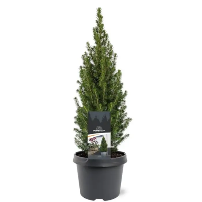 De Dwergspar of Canadese spar (Picea glauca Perfecta) wordt in Nederland uiteindelijk maximaal 150 cm hoog en wordt dan ook veelal gebruikt als mini kerstboompje voor in de kamer of op het terras. De boom is in Nederland gekweekt en is ca. 80-100 cm hoog.