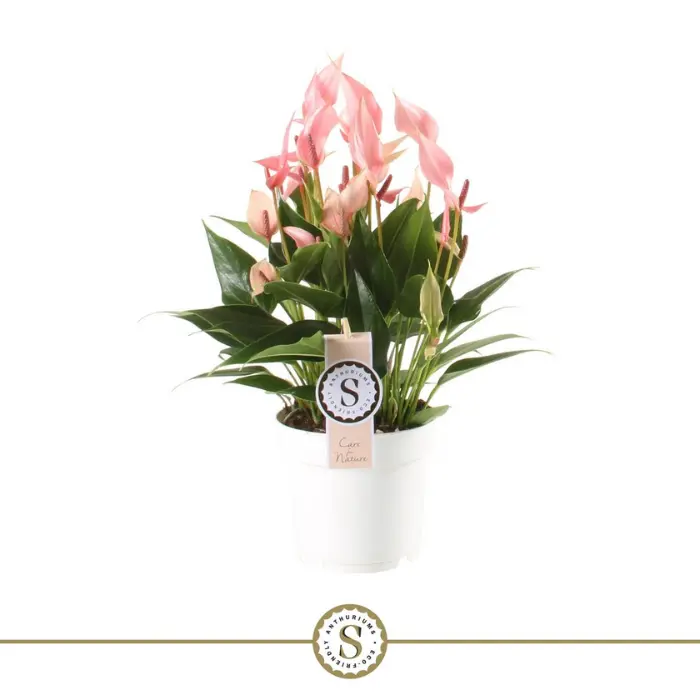 Een Anthurium is een plant die continue nieuwe bloemen maakt en is er in veel kleuren. Zet de Flamingoplant op een licht plek, maar niet in direct zonlicht omdat het blad dan kan verbranden. Krijgt de plant te veel zonlicht wordt het blad geel. En bij te weinig licht kleuren de bloemen groen of er groeien helemaal geen bloemen meer. Verpotten kan om de twee à drie jaar zodat de wortels meer ruimte krijgen om te groeien en in verse potgrond zit weer voeding. Verpotten kan het beste in het voorjaar, zodat eventuele beschadigde wortels sneller herstellen. En in de wintermaanden hoeft de Anthurium geen voeding te krijgen. Voeding geef je alleen in de lente- en zomermaanden en geef dan gewone kamerplantenvoeding voor bloeiende planten.