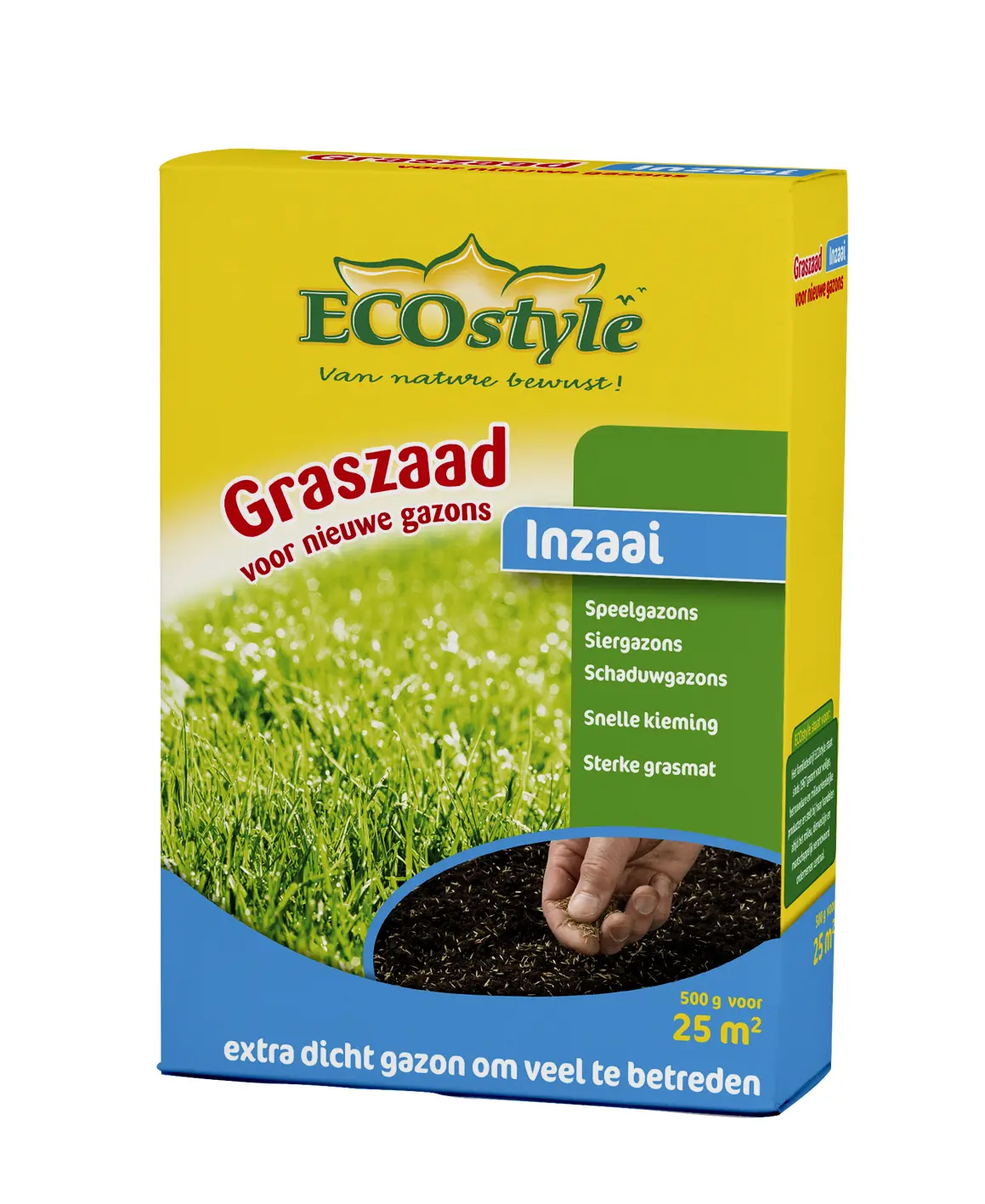 ECOstyle Graszaad Inzaai is 100% natuurlijk. Het zaad heeft een kleicoating tegen vogelvraat waardoor de vogels het zaad niet snel zullen opeten. Het bevat een micro-organismen voor een snelle ontkieming. Geschikt voor zowel schaduw- als speelgazon omdat het grassoorten bevat (raaigras, veldbeemdgras, verschillende soorten roodzwenkgras) die zowel zonlicht als schaduw verdragen. Je kunt het zaad het beste zaaien van maart t/m mei en van augustus t/m september.