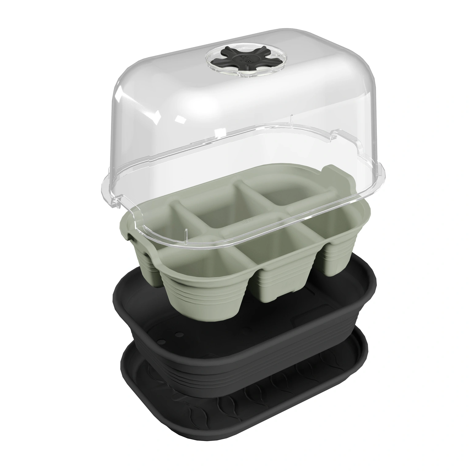 De Green Basics Kweekbak van elho heeft 6 aparte bakjes waardoor de wortels van de verschillende plantjes niet door elkaar groeien. Zo zou je in elk bakje wat anders kunnen zaaien. Gemakkelijk om bijvoorbeeld in de vensterbank te zetten. Wat het zaaien nog gemakkelijker en mooier maakt is om de Kweektray te combineren met een Kweektray Schotel en een Kweekhuis (deksel). Zo creëer je de perfecte omgeving om de zaden goed te laten groeien.