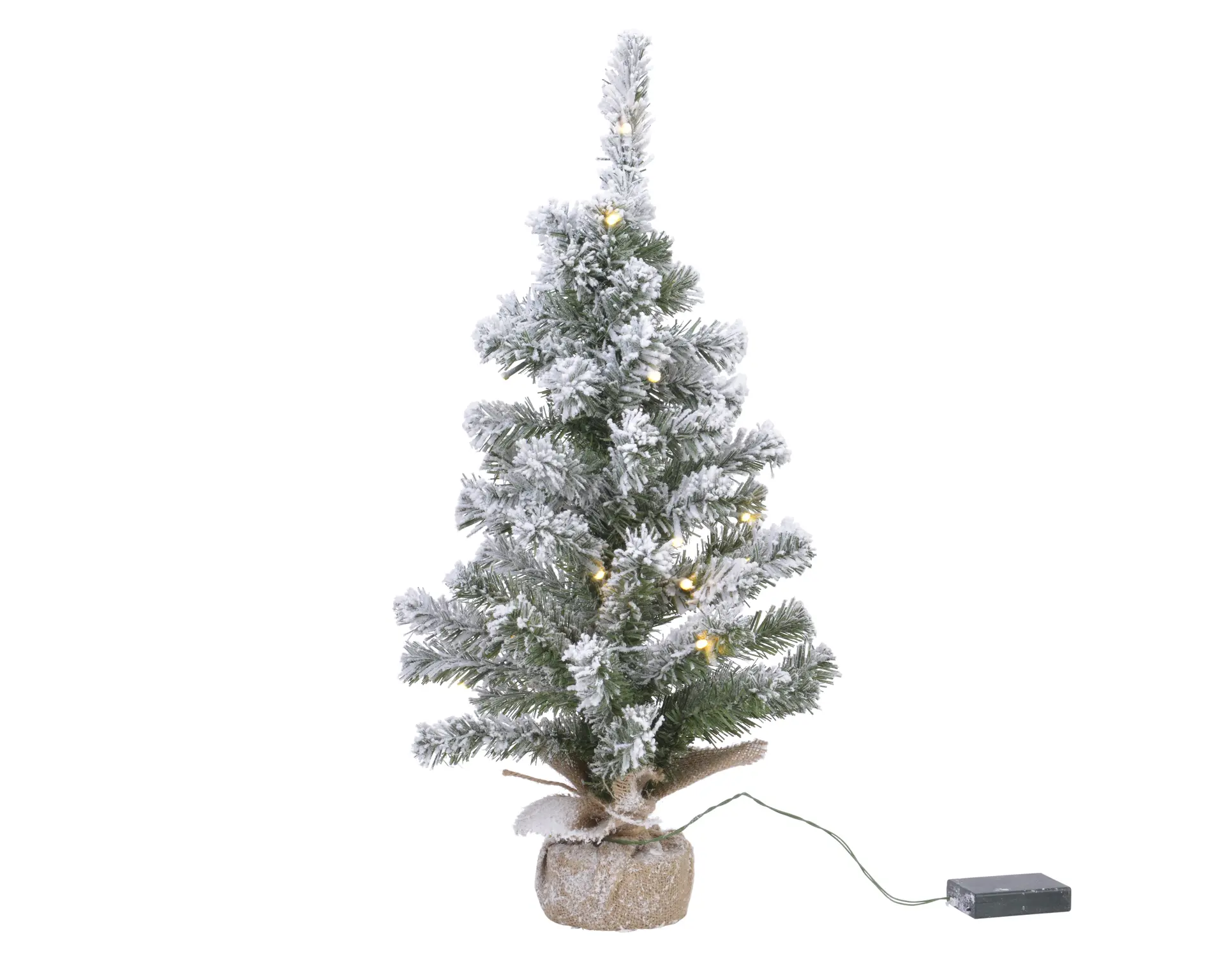 - € 1,40De Imperial mini kunstkerstboom van Everlands heeft al verlichting van 20 bulbs (lampjes) die warm wit licht schijnen. De afstand tussen de bulbs is 15 cm en de LED lampjes hebben een grootte van 5 mm. Ook zit er een 6u on/18u off timer op. De lampjes knipperen niet, zijn steady. De verlichting werkt op 3x AA batterijen (exclusief) en is inclusief een batterijkastje. De lengte van het aanloopsnoer is 30 cm. Om de voet van de boom zit een jute zak.