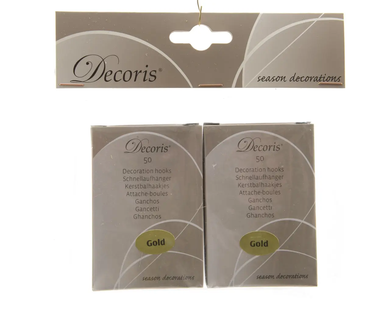 De kerstbalhaakjes hebben een lengte van 3,5 cm en er zitten 50 stuks in een doosje. De haakjes zijn er ook in het zilverkleurig.