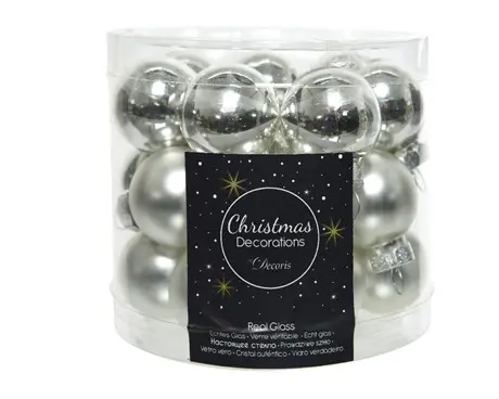 De 24 kerstballen bestaan uit twee soorten, 12x shiny en 12x mat. Ze hebben een prachtige zilveren kleur en zijn gemaakt van glas.