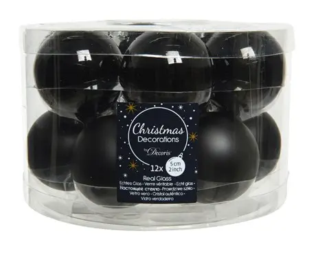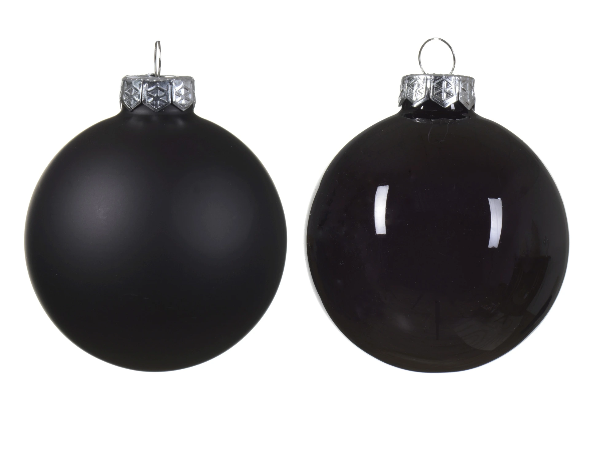 De 12 kerstballen bestaan uit twee soorten, 6x shiny en 6x mat. Ze hebben een prachtige zwarte kleur en zijn gemaakt van glas.