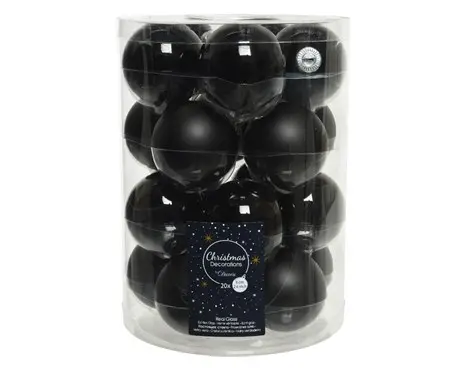 De 20 kerstballen bestaan uit twee soorten, 10x glanzend en 10x mat. Ze hebben een prachtige zwarte kleur en zijn gemaakt van glas.