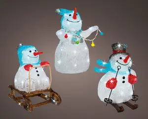 Led Sneeuwpop Acryl Skiing/Sledding/Steady Bo L.21.5W.29.5H.32Cm Ass./Koel Wit