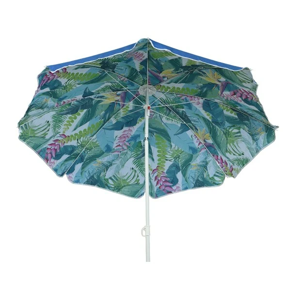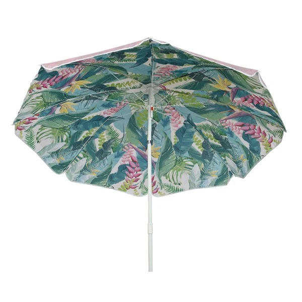 De stokparasol Ø160 cm assorti is perfect voor kleinere buitenruimtes. Het compacte formaat maakt hem ideaal voor balkon of terras, terwijl hoogte van 180 cm voldoende ruimte biedt voor comfortabele schaduw. Verkrijgbaar in de frisse kleuren blauw en roze die eenvoudig passen bij jouw tuinbeeld. Wat deze parasol zo leuk maakt is dat de onderkant van de parasol bewerkt is met bladeren en bloemen. Je kijkt dus tegen een vrolijke onderkant aan. De parasol is gemakkelijk te plaatsen en licht van gewicht.