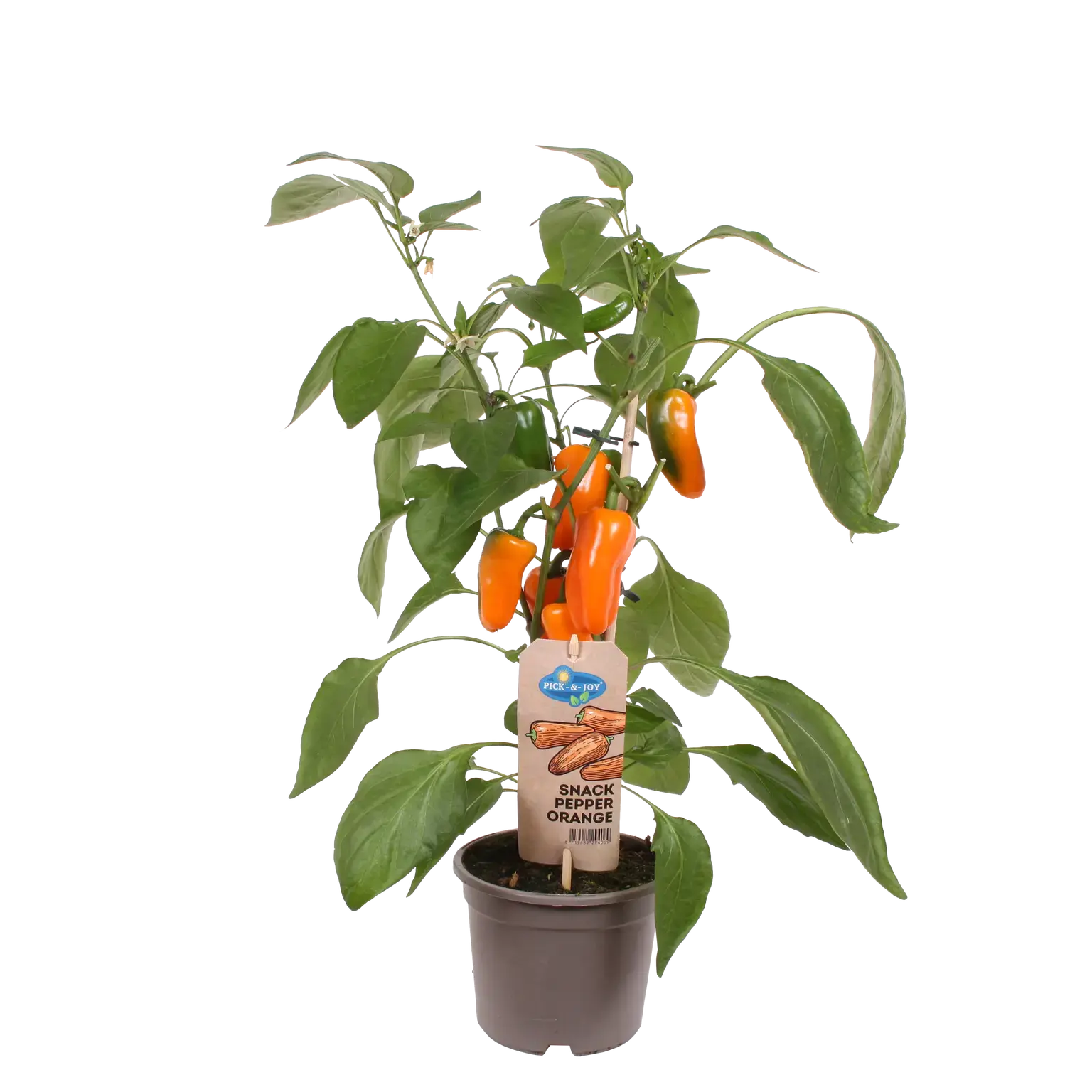 Pick-&-Joy® snackpaprika oranje is een gezonde en kleurrijke snack voor tussendoor of bij een salade. Met de Pick-&-Joy® snackpaprika oranje haal je een compacte plant in huis die zoete, oranje snackpaprika’s produceert. Zet de plant op een zonnige of halfschaduw plek en geef regelmatig water. Oogst de paprika’s wanneer ze mooi oranje en stevig zijn.
