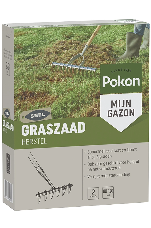 Pokon Graszaad Herstel is speciaal ontwikkeld om kale plekken en beschadigde delen van het gazon te herstellen. Het mengsel kiemt snel, al bij een bodemtemperatuur van 6°C, en en helpt het gazon weer dicht en sterk te maken. Het is ook zeer geschikt voor na het verticuteren. Pokon Graszaad Herstel is verrijkt met een startvoeding. Je kunt het ook gebruiken voor het doorzaaien van het gazon.