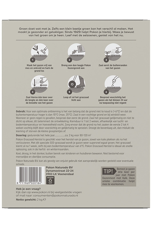 Pokon Graszaad Herstel is voor het herstellen van een beschadigd gazon. Geschikt voor 80-120 m².