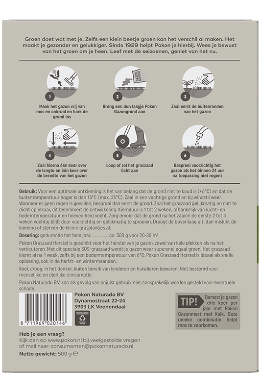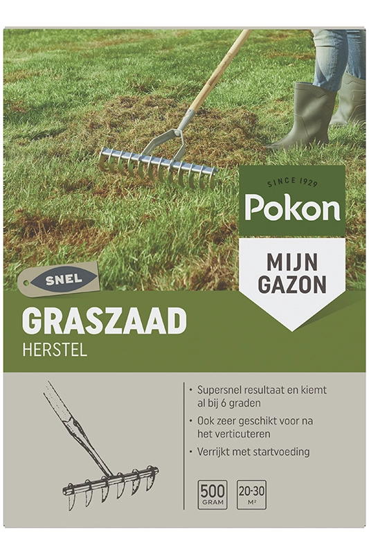 Graszaad Herstel van Pokon geeft een supersnel resultaat en kiemt al bij 6°C. Geschikt voor 20-30m².