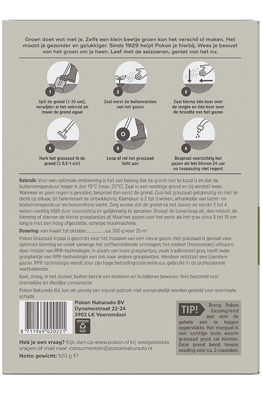 Voor een ijzersterk, zelfherstellend en groen gazon gebruik je Graszaad Inzaai van Pokon. Geschikt voor 25m².