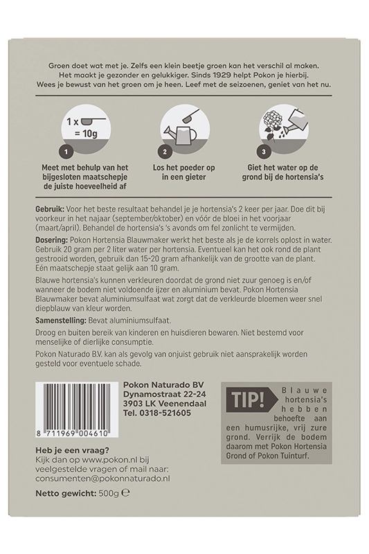 Hulpmiddel om de blauwe kleur van hortensia’s te ondersteunen.Tuinland Assen (0)
