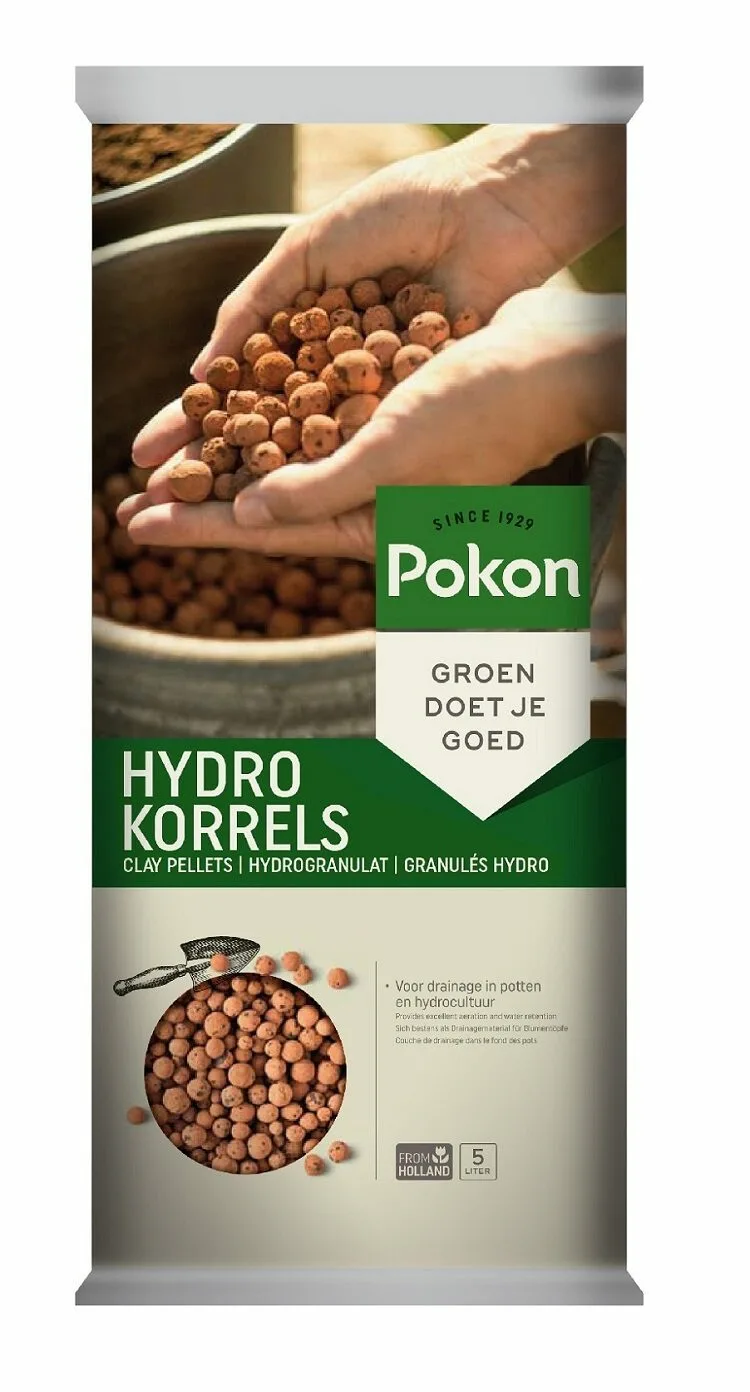 Pokon Hydrokorrels zijn gemaakt van gebakken klei en zorgen voor een luchtige laag in bloempotten en plantenbakken. Ze helpen overtollig water af te voeren, waardoor wortels minder snel te nat worden.