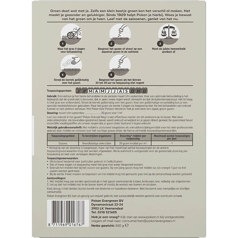 Pokon Onkruid Weg bestrijdt onkruid op plaatsen waar je geen ongewenste begroeiing wilt. Het product is geschikt voor gebruik op paden, terrassen en langs randen en zorgt ervoor dat onkruid effectief wordt aangepakt.