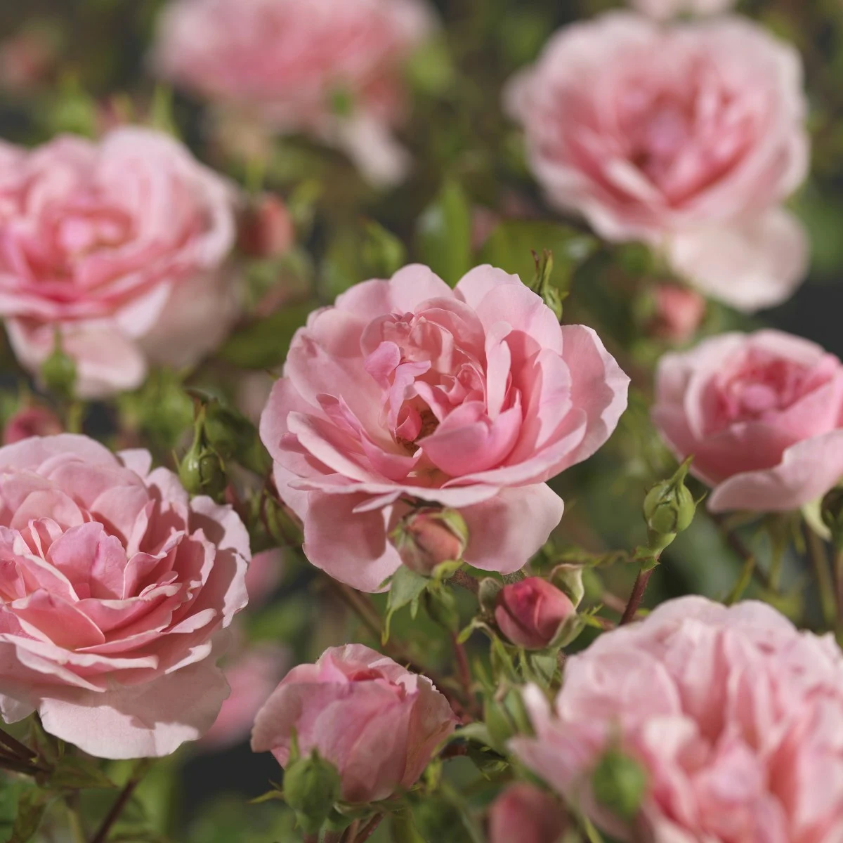 Roos 'Bonica'® is een struikroos met een uitbundige bloei van roze bloemen.