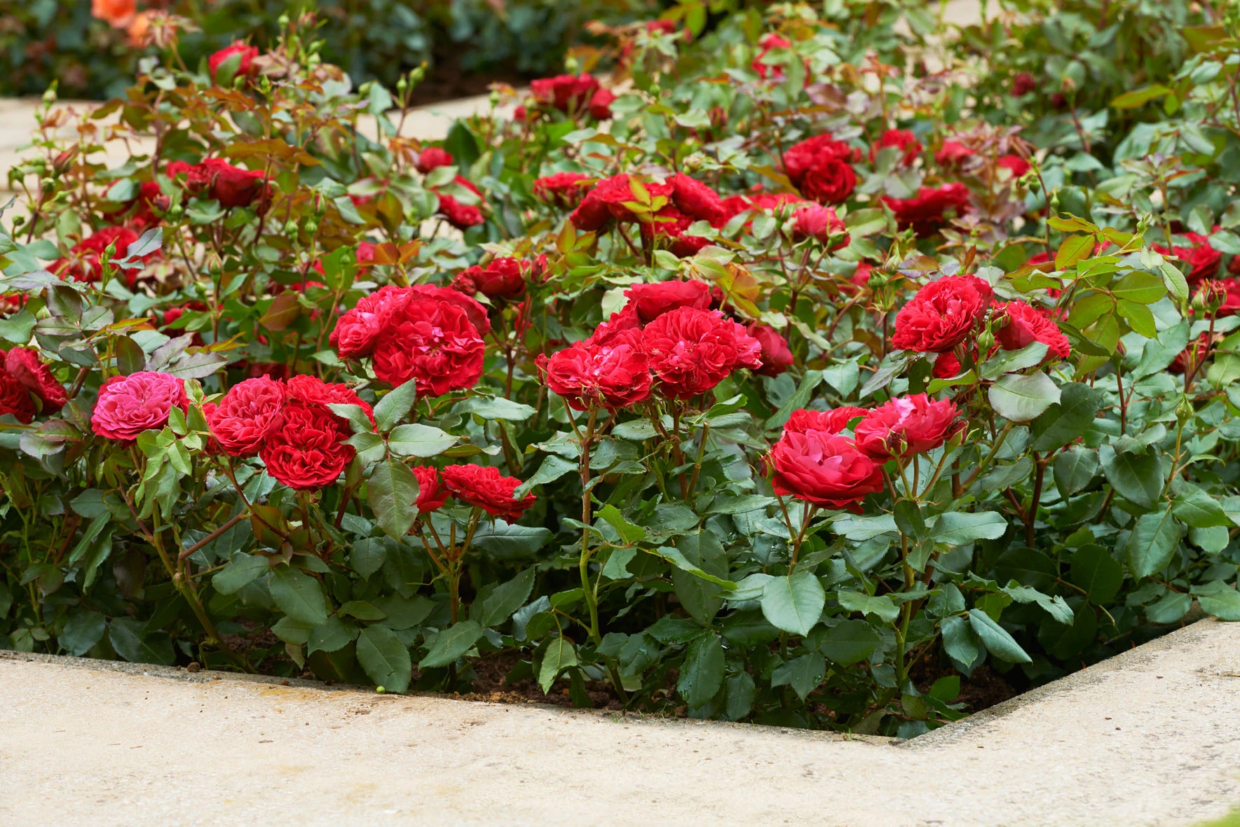 'Europeana' is een eenvoudige rode trosroos die bekend staat om haar winterhardheid.