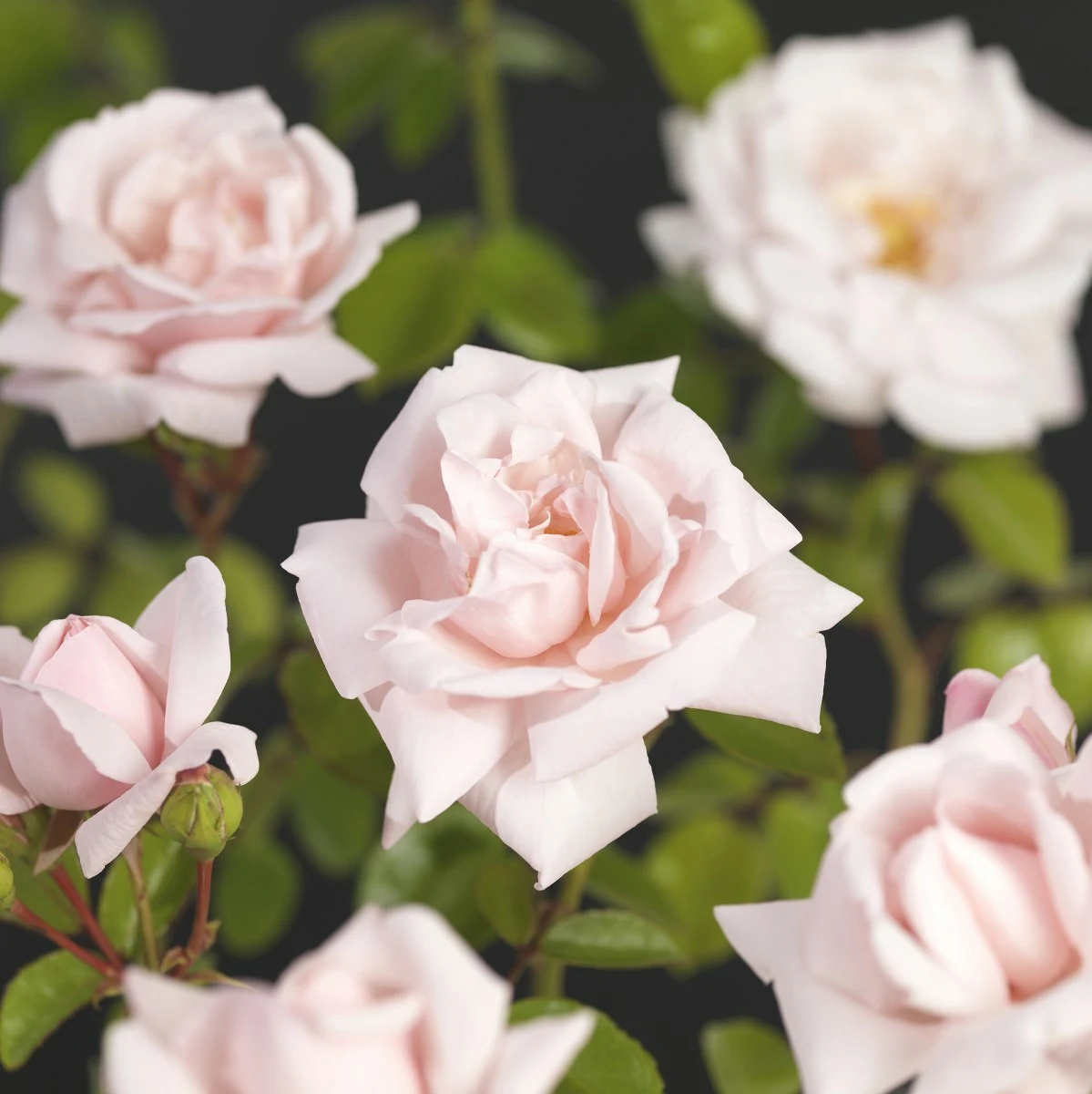 Subtiele lichtroze bloemen groeien aan deze fantastische klimroos 'New Dawn'.