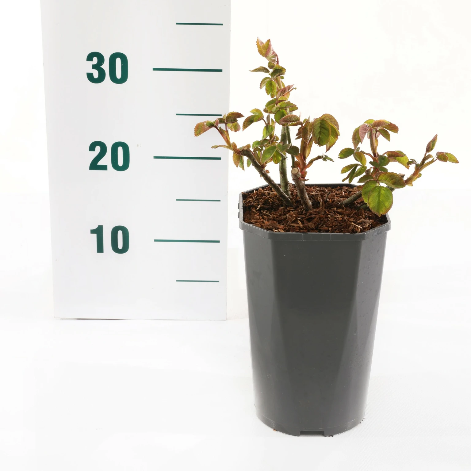 - Verwijder de plastic pot van de roos