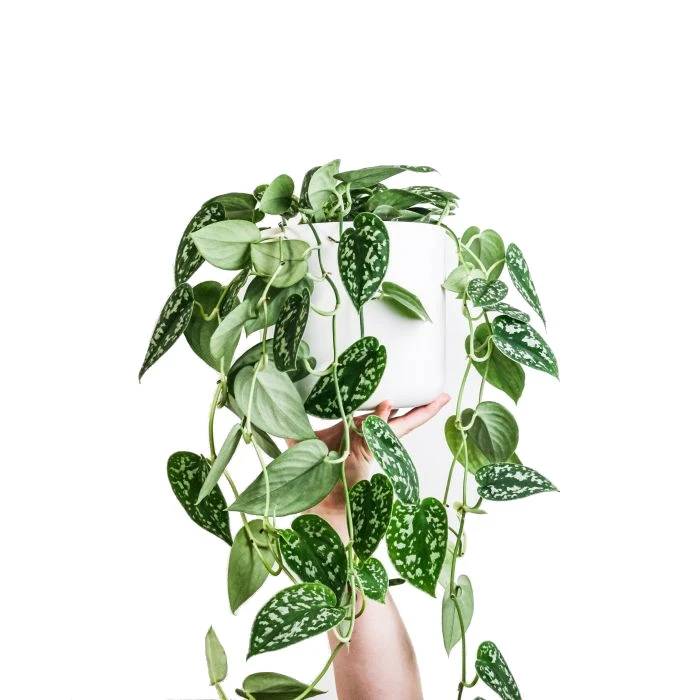 De Scindapsus (Epipremnum) is een prachtige hangplant met donkergroen blad met kleine zilvergrijze spikkels er op.