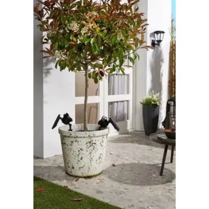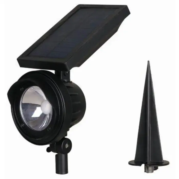 Met de bijgeleverde grondspies kun je deze Texas grondspot heel eenvoudig in een zachte ondergrond steken. Je kunt de zonnepaneel en de kop van de spot verstellen. Zo kun je de lichtstraal op een pad laten schijnen of op een boom of struik in de tuin. In de wintermaanden kun je de lamp op 50% helderheid zetten. Zo heeft de lamp ook als de zon minder schijnt genoeg energie om de tuin te verlichten. Ook is de lamp via het USB kabeltje op te laden. Geschikt voor buiten, inclusief batterijen en je kan deze lamp niet dimmen. De kleur van de verlichting is warmwit.