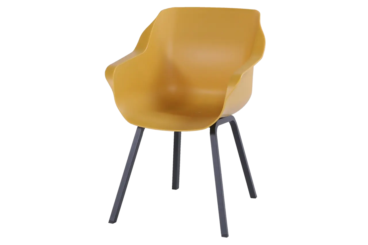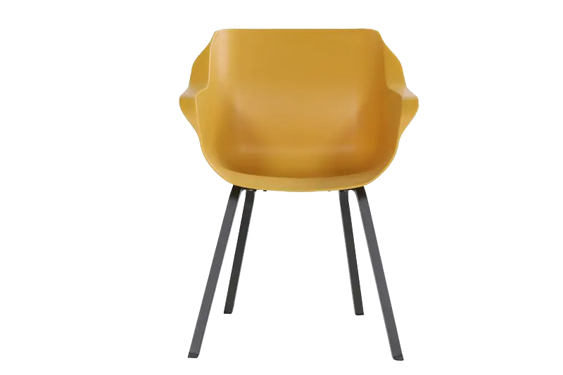 De Hartman Sophie Element armchair in Curry Yellow is een moderne kunststof tuinstoel met een frisse, opvallende kleur. Lichtgewicht, onderhoudsvriendelijk en ideaal voor tuin, balkon of terras.Tuinland Assen (8)