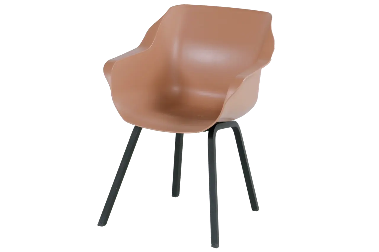 De ergonomisch gevormde zitting en rugleuning bieden een aangename zitervaring, ook zonder kussen. Met een zithoogte van 44 cm en goed geplaatste armleuningen zit je comfortabel tijdens een diner, koffiemoment of relaxmoment buiten.
