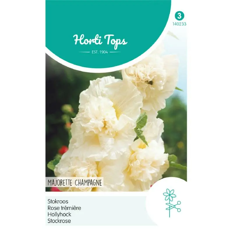 Stokroos 'Majorette Champagne' heeft prachtige gevulde bloemen met een bruisende champagne kleur. De bloemen trekken bijen en hommels aan.