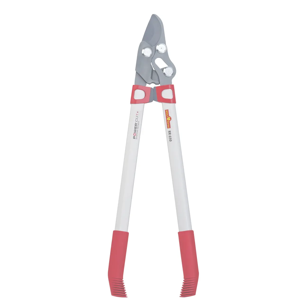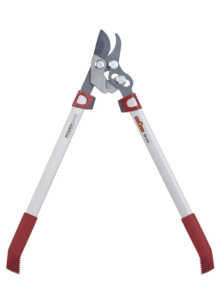 Met de Wolf-Garten Takkenschaar Power Cut* RR650 met bypass (papegaaienbek) snoei je eenvoudig jong en/of zacht hout.