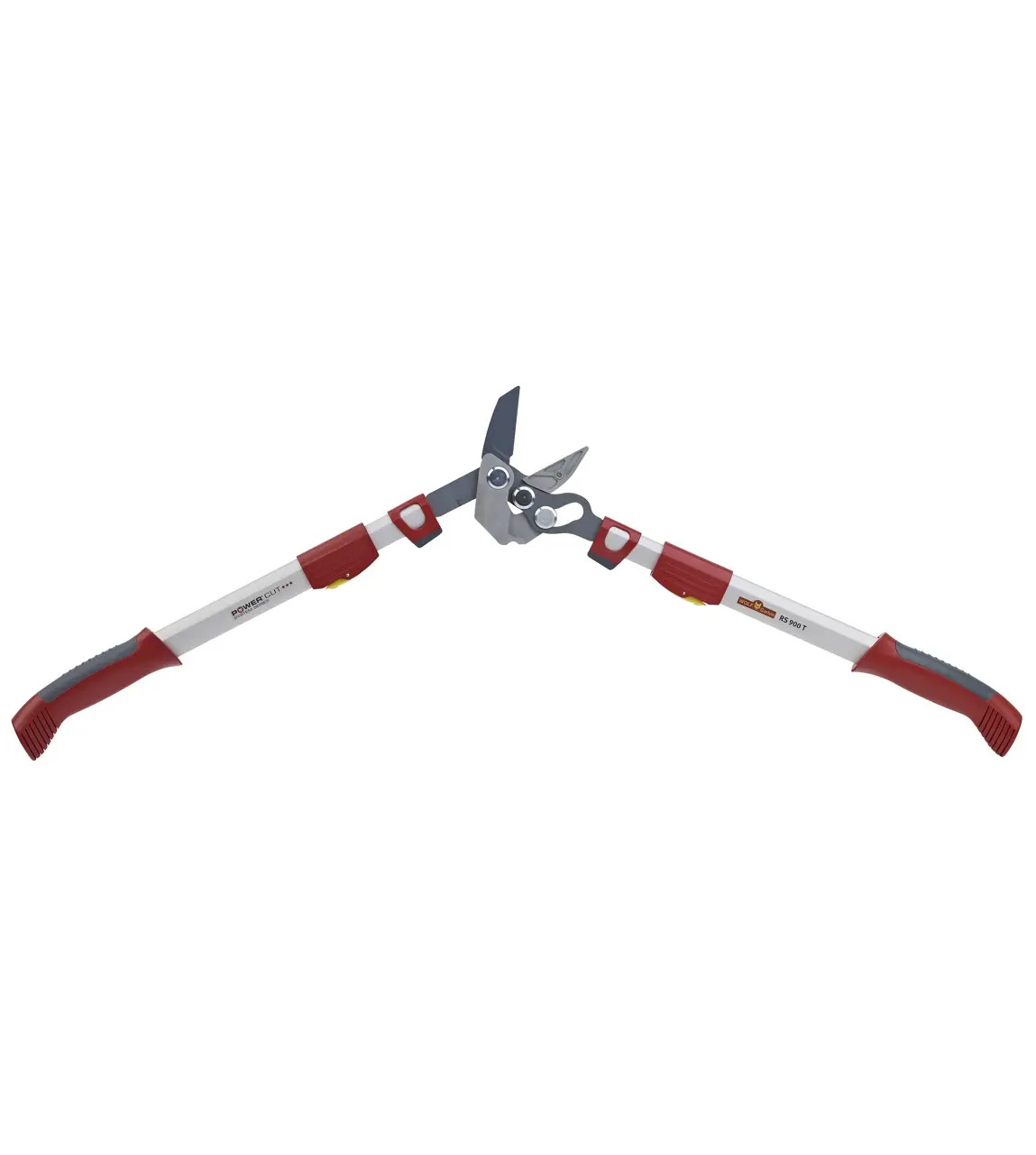 De takkenschaar Power Cut*** RR900 T heeft een telescopische verstelling van 65-90 cm en tot 4x meer kracht dankzij de nieuwe snijkoptechnologie. De schaar heeft twee ergonomische 2-K kunststof handgrepen met soft grip wat lekker in de hand ligt. De messen hebben een antikleeflaag wat hechting van sappen voorkomt op het mesoppervlak. Zo kun je schoon en nauwkeurig snoeien. De hefboomarmen hebben een geëloxeerde aluminium laag, een harde, beschermende laag aluminiumoxide. Dit verhoogt de duurzaamheid, slijtvastheid en corrosiebestendigheid. De schroeven zijn vlak om onnodige schade aan de boom te minimaliseren. De takkenschaar heeft een precieze instelbare messpanning en stootbuffers.