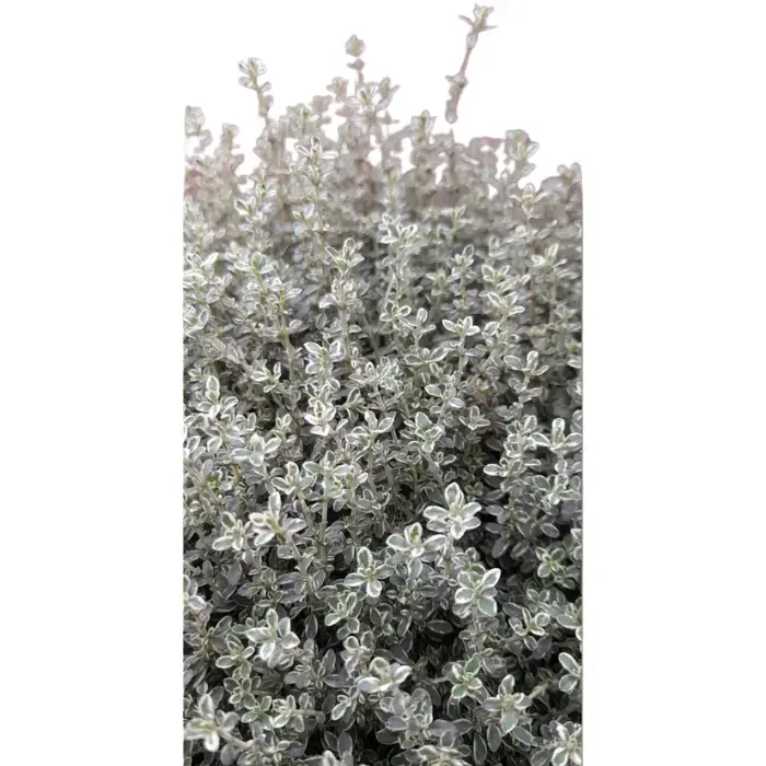 Echte Tijm (Thymus vulgaris) is een kruidenplant die aromatisch geurend blad heeft en wintergroen is.