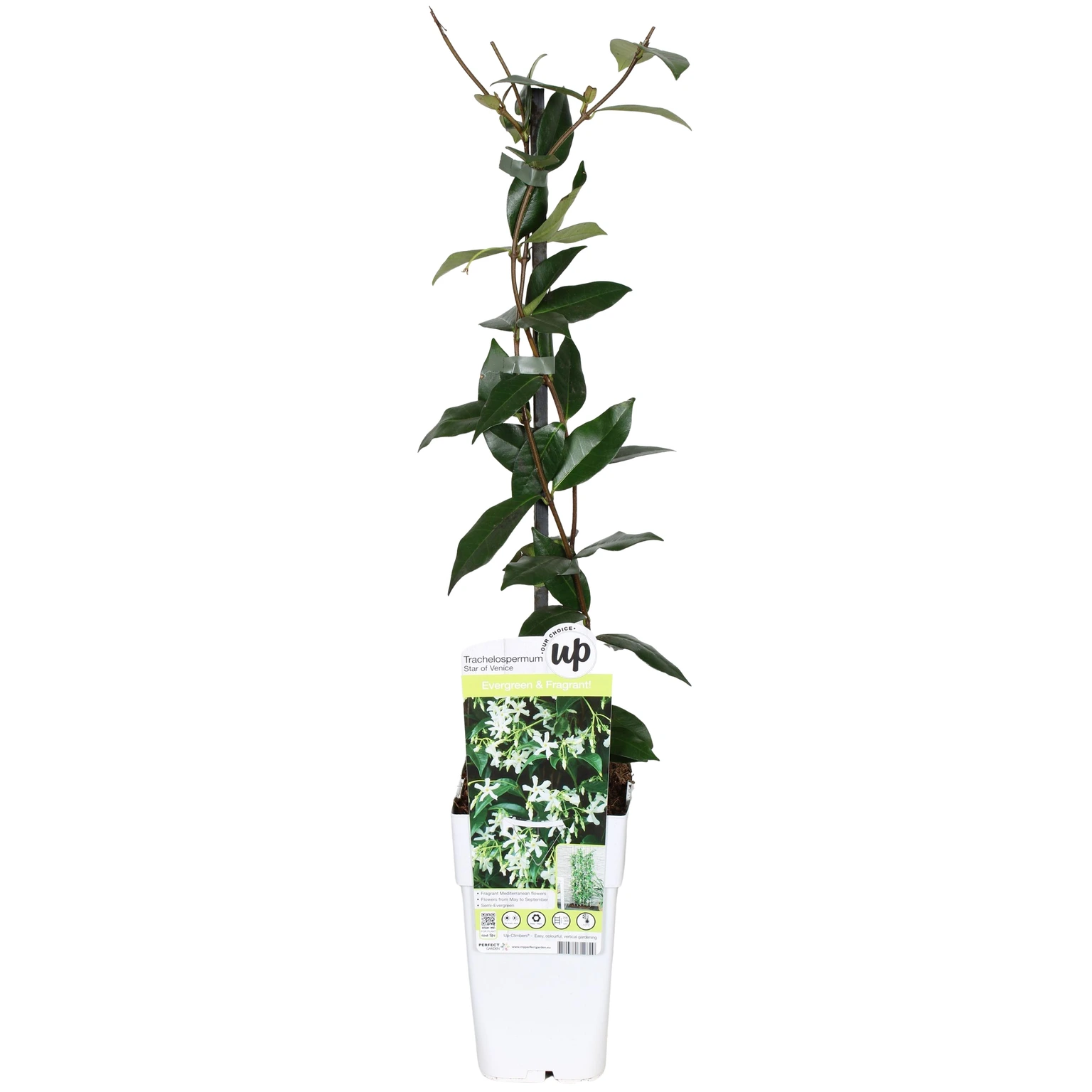 Trachelospermum jasminoides 'Star of Venice' is een wintergroene klimplant met heerlijk geurende bloemen. Groeit het beste op een zonnige, beschutte plek. Ideaal voor muren en schuttingen.