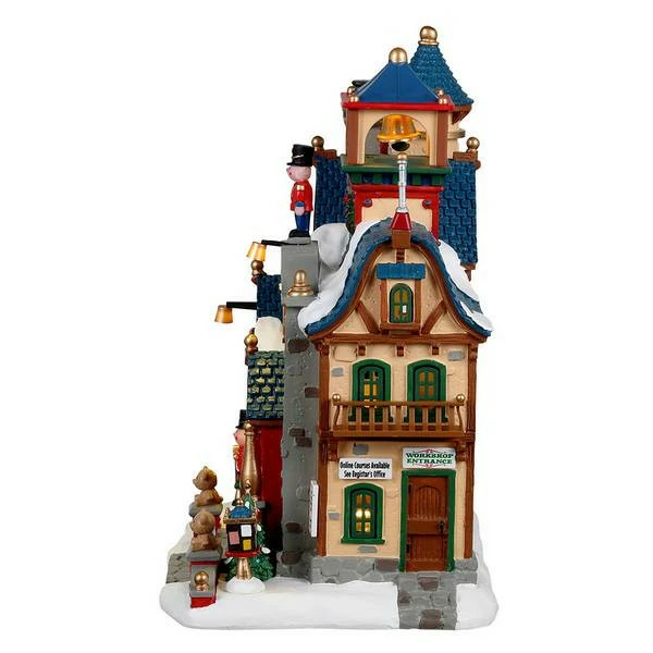 De Toy Making School van Lemax is een must bij alle elfen om hier speelgoed te leren maken. Bij de ingang staan twee zelfgemaakte beren en een notenkraker. Zo kun je zien hoe goed de elfen dit al kunnen. Je kunt door een raam naar binnen kijken wat de elfen daar doen. Dit Lemax huisje werkt op 3x AA-batterijen (exclusief) en heeft een aan/uit-schakelaar. Kan op een adapter (exclusief) worden aangesloten.