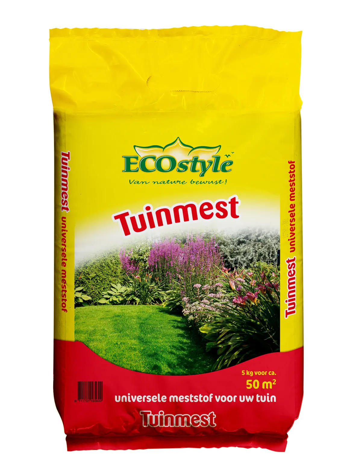 Organische ECOstyle Tuinmest 5 kg zorgt voor een gezonde, sterke tuin met langdurige voeding voor bloemen, planten en gazon.