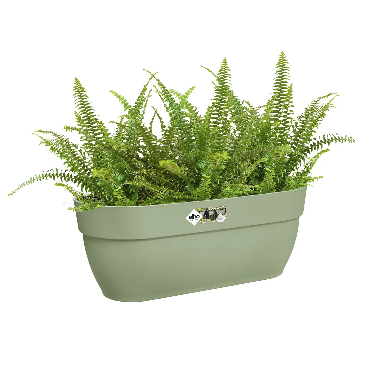 De balkonbak is gemaakt van 100% gerecycled plastic, geproduceerd met windenergie en is weer volledig recyclebaar.
