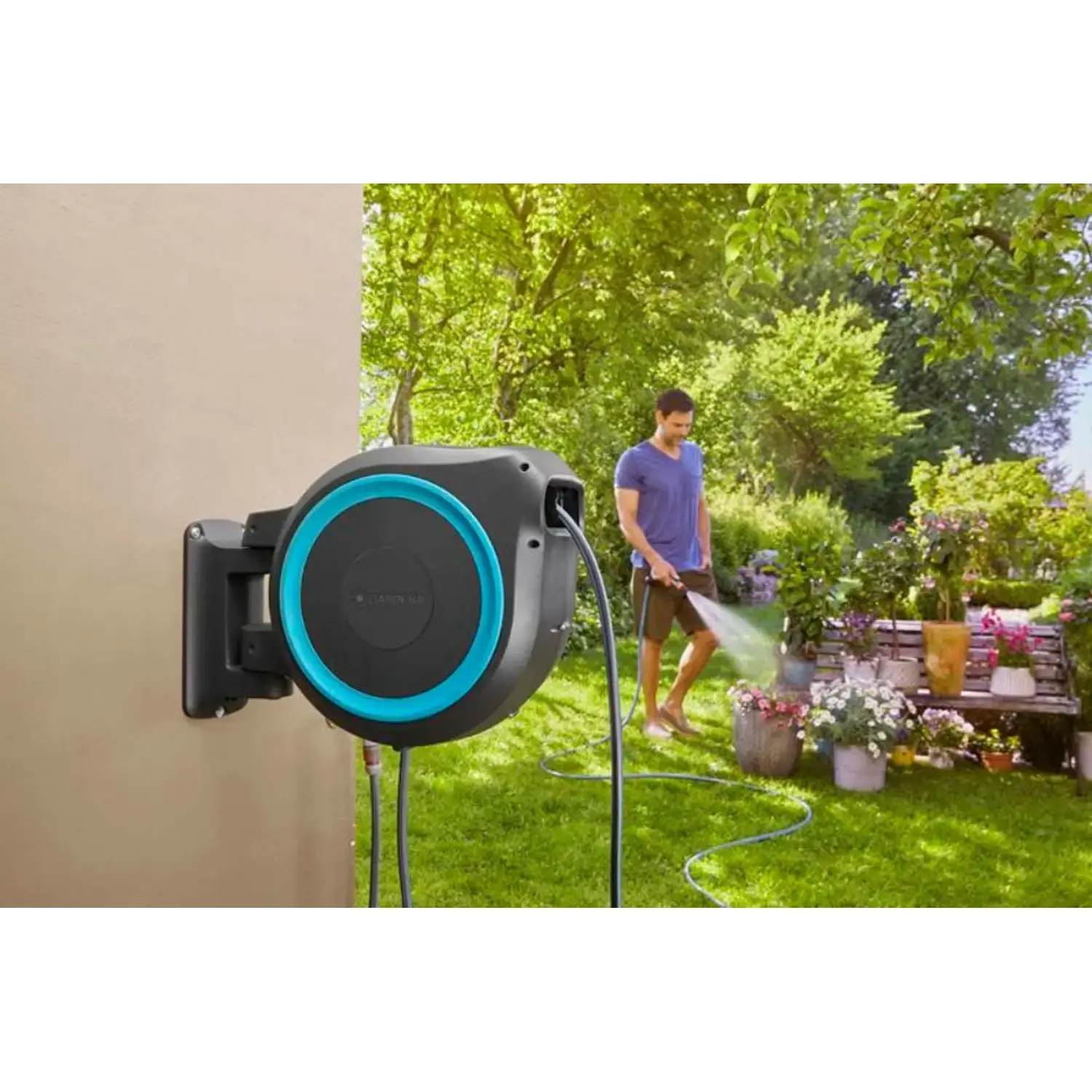 Maak het bewateren van de tuin gemakkelijk door deze wandslangenbox van Gardena te gebruiken.