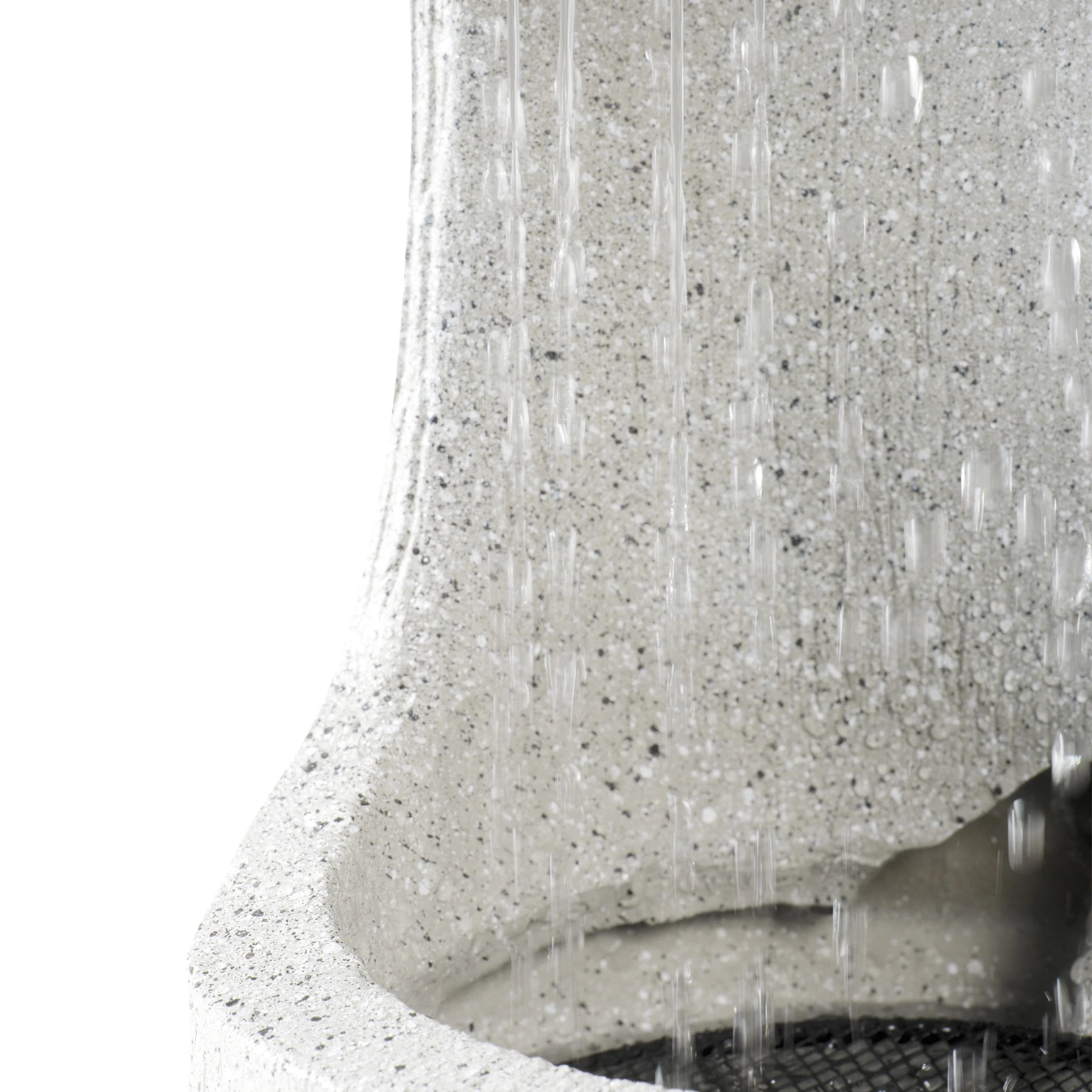 De lichtgrijze cilindervormige fontein heeft bovenop een geïntegreerde bloempot waar je een plant in kunt zetten. Zo creëer je nog meer sfeer in huis of in de tuin.