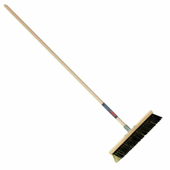 De X-bezem van Talen Tools heeft een breedte van 40 cm en zo heb je snel grote oppervlakken schoon geveegd. Door de stand van de kokos haren die schuin achter elkaar staan, zorgt het vegen voor een nog betere opname van het vuil. De houten steel heeft een lengte van 160 cm. Deze steel is gemonteerd in een dul. De ondersteuning van een dul is voor een betere aanhechting tussen de steel en de bezem. Ook wordt de druk beter verdeeld over de bezem. Zo trekken de haren minder snel krom en blijven ze langer in de oorspronkelijke staat. Als je de bezem weg zet na gebruik, doe dit dan met de borstelharen omhoog ter bescherming van de borstelharen.